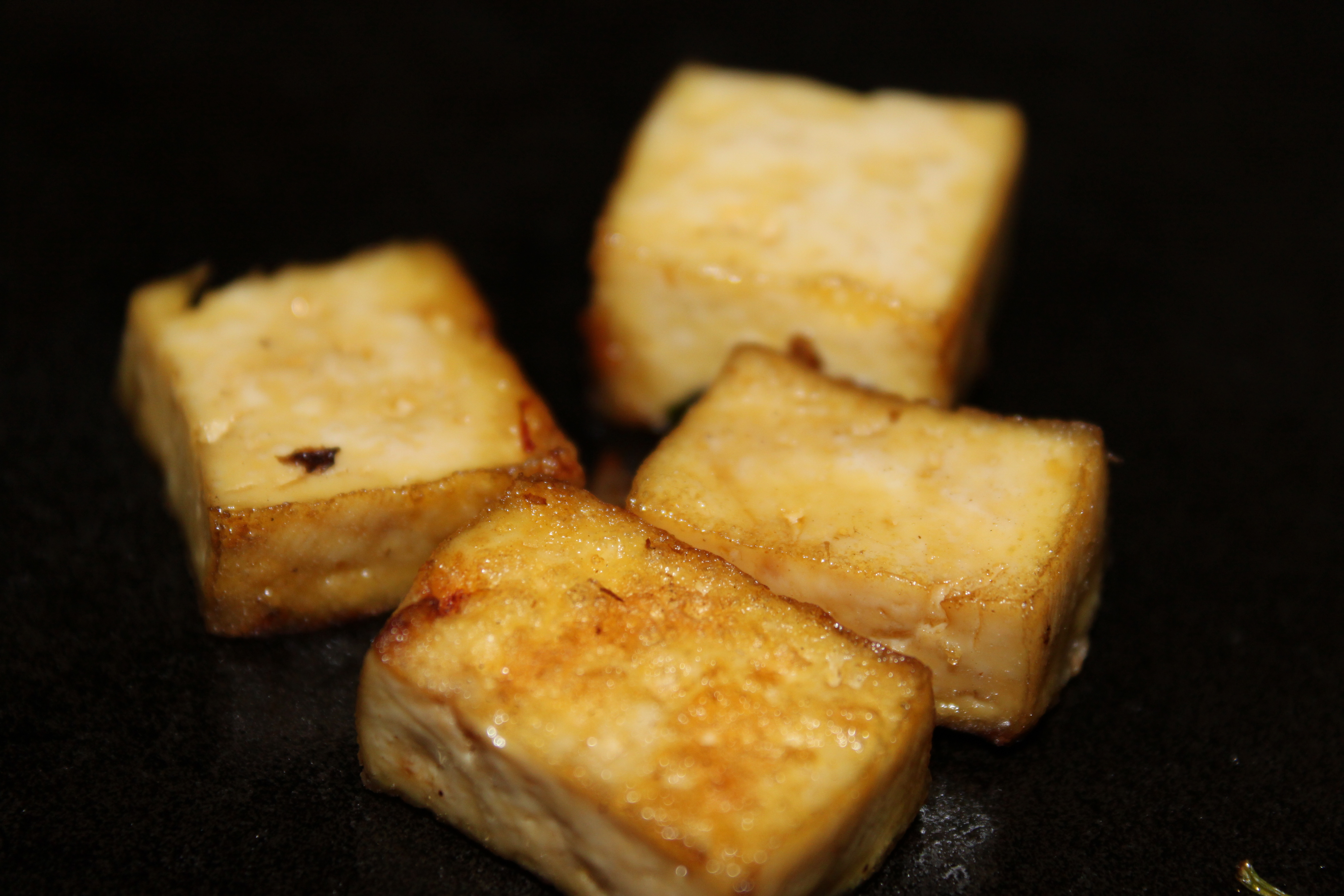I came across Hodo Soy Beanery organic tofu at Whole Foods this week and decided to give it a shot. I think it may be the best tofu I have had in a long time. This tofu did not come packed in water, so it was very easy to use. I always like to take the extra time to squeeze excess water out of regular supermarket tofu I buy, but in a pinch sometimes that is not an option, and then it doesn’t get that crispy texture on the outside.