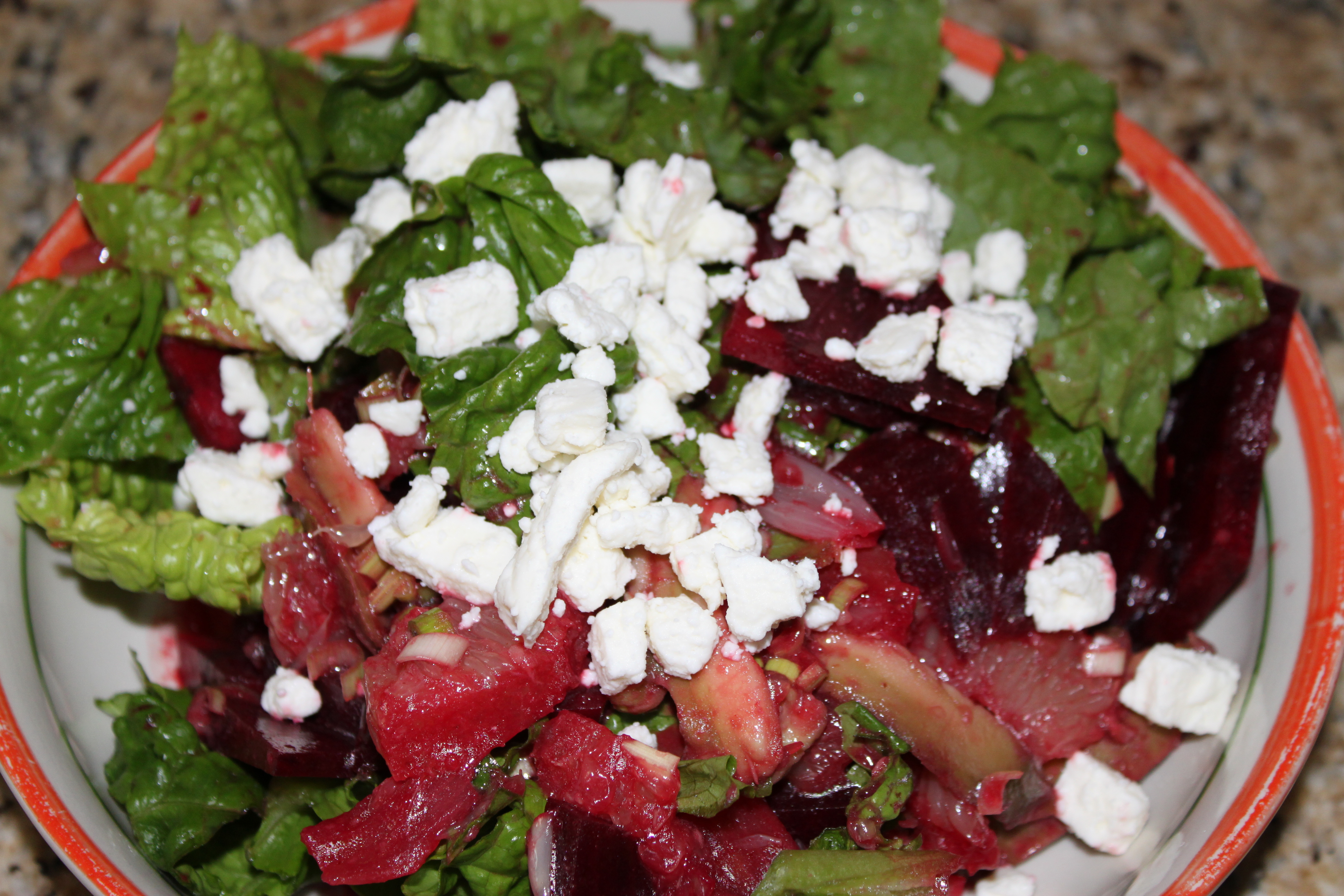 I love having a creative salad on Saturday for lunch. I have the extra time to put together a dressing and use more unique ingredients. I had pickled some beets earlier today, so decided to make use of some of the leftovers for a salad.