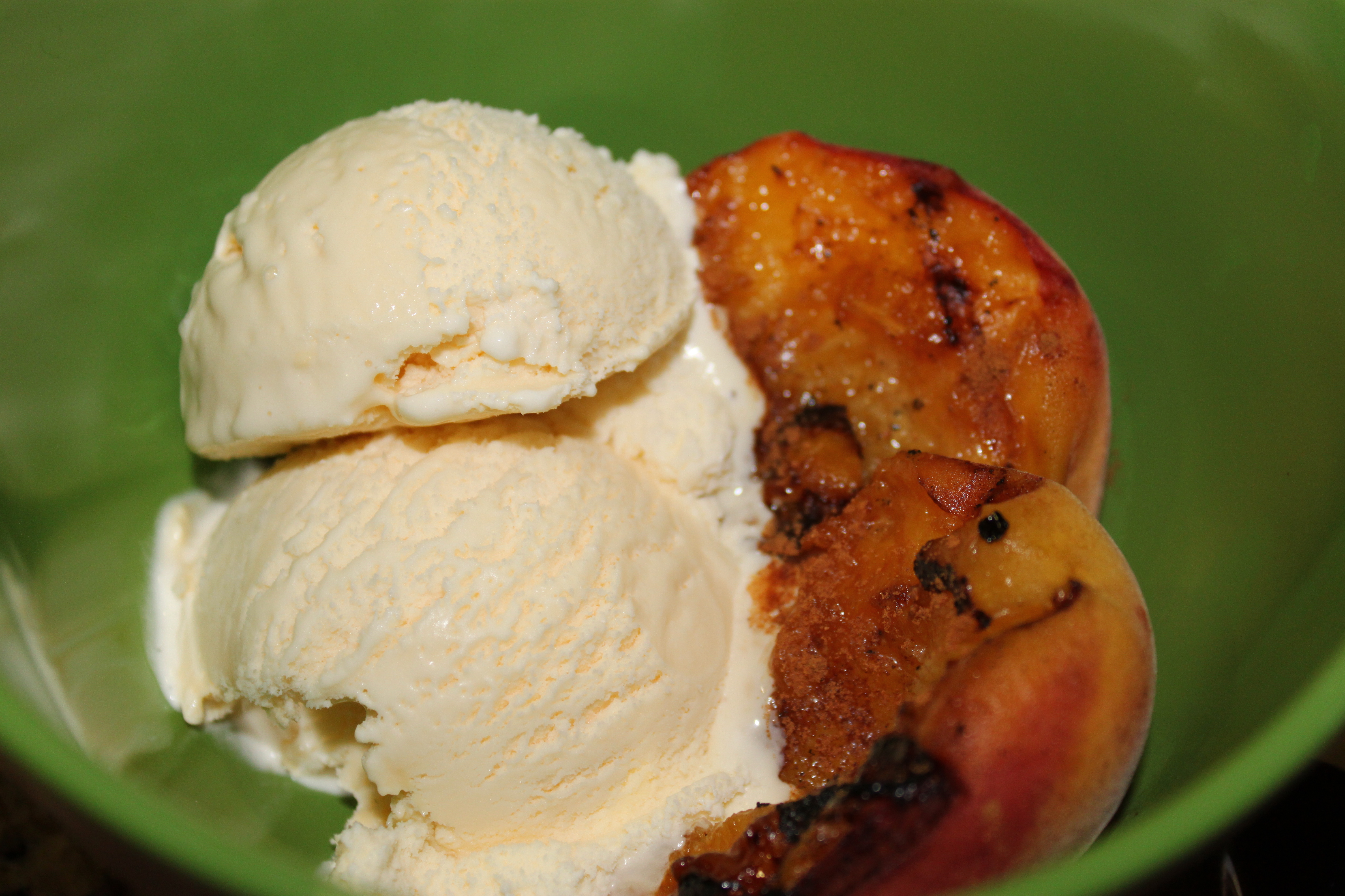Once the peaches had some nice grill marks, I sprinkled them with some cinnamon and served them with a scoop (or two!) of ice cream. So fresh tasting, and if I hadn’t been so generous with the ice cream, it would have been a fairly low-cal dessert.