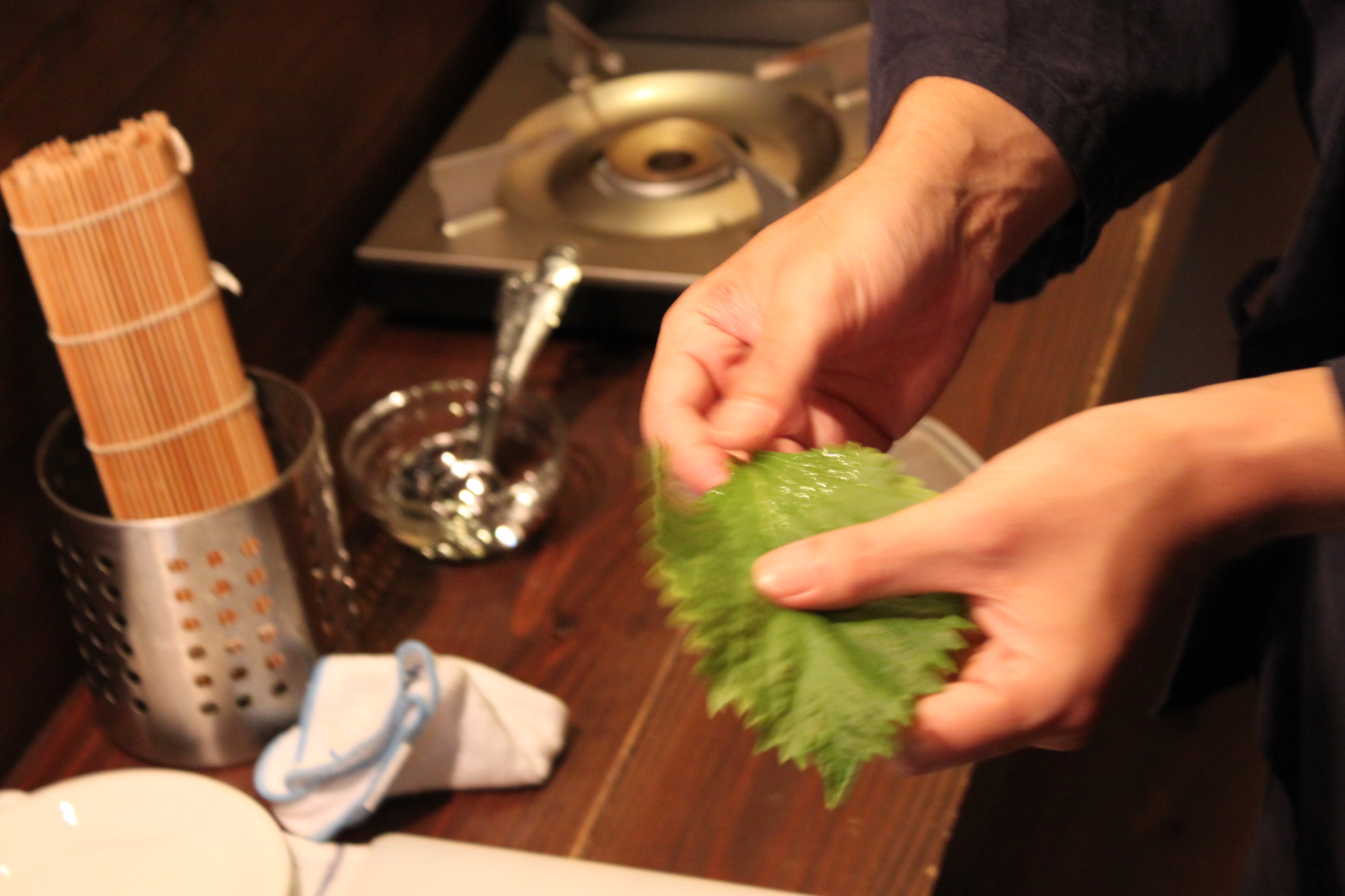 We made some sushi rolls with pickled cucumbers and shiso (also known as perilla, this herb tastes like it belongs in the mint or fennel family). The rolls were simple to make, but the conversation during the process inspired many ideas for future sushi adventures.