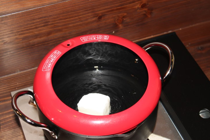 The agedashi tofu we made was not deep fried, which was fantastic. We carefully cut up pieces of soft tofu (in this case, it was Kyoto Tofu, a local brand) and lightly coated them with potato starch. We added a small amount of oil to a tempura pan and fried each side – you had to be very gentle when handling it, and it tasted just as good as the deep-fried version.