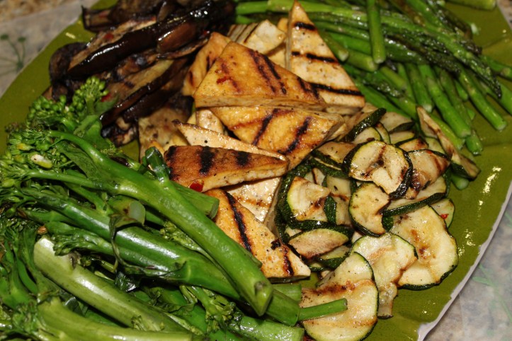 I grilled the veggies dry and once they were almost cooked, dunked them into the marinade and then returned them to the grill to keep warm. This method worked well because I didn’t have to marinade the veggies in advance.