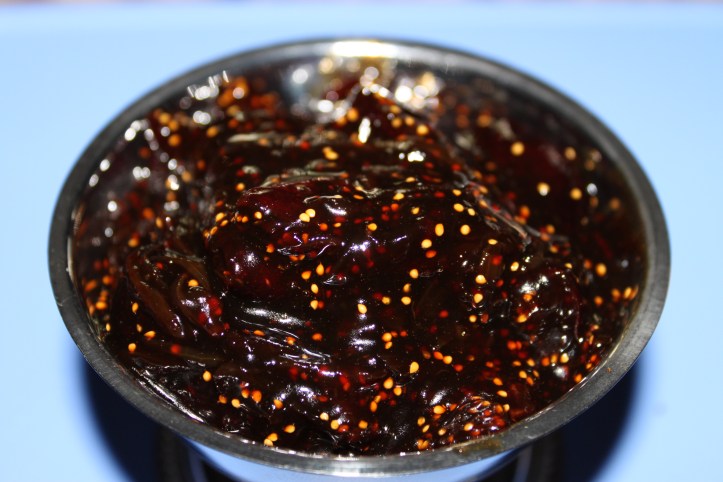 The summer is coming to an end which means figs are out in full force right now. I don’t think I could ever truly enjoy a dry fig ever again after eating them fresh. My CSA delivery this week included a basket of figs – the husband was not aware of this and picked up a second basket from Whole Foods. I’m not complaining though because this meant I could get creative with one basket and make something new – in this case, a fig chutney. I haven’t decided what my “vehicle” for it is going to be, but I think a goat cheese purchase is in order.