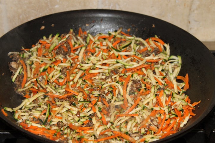 - I cooked the vegetables down until all the water was released and seasoned the veggies.