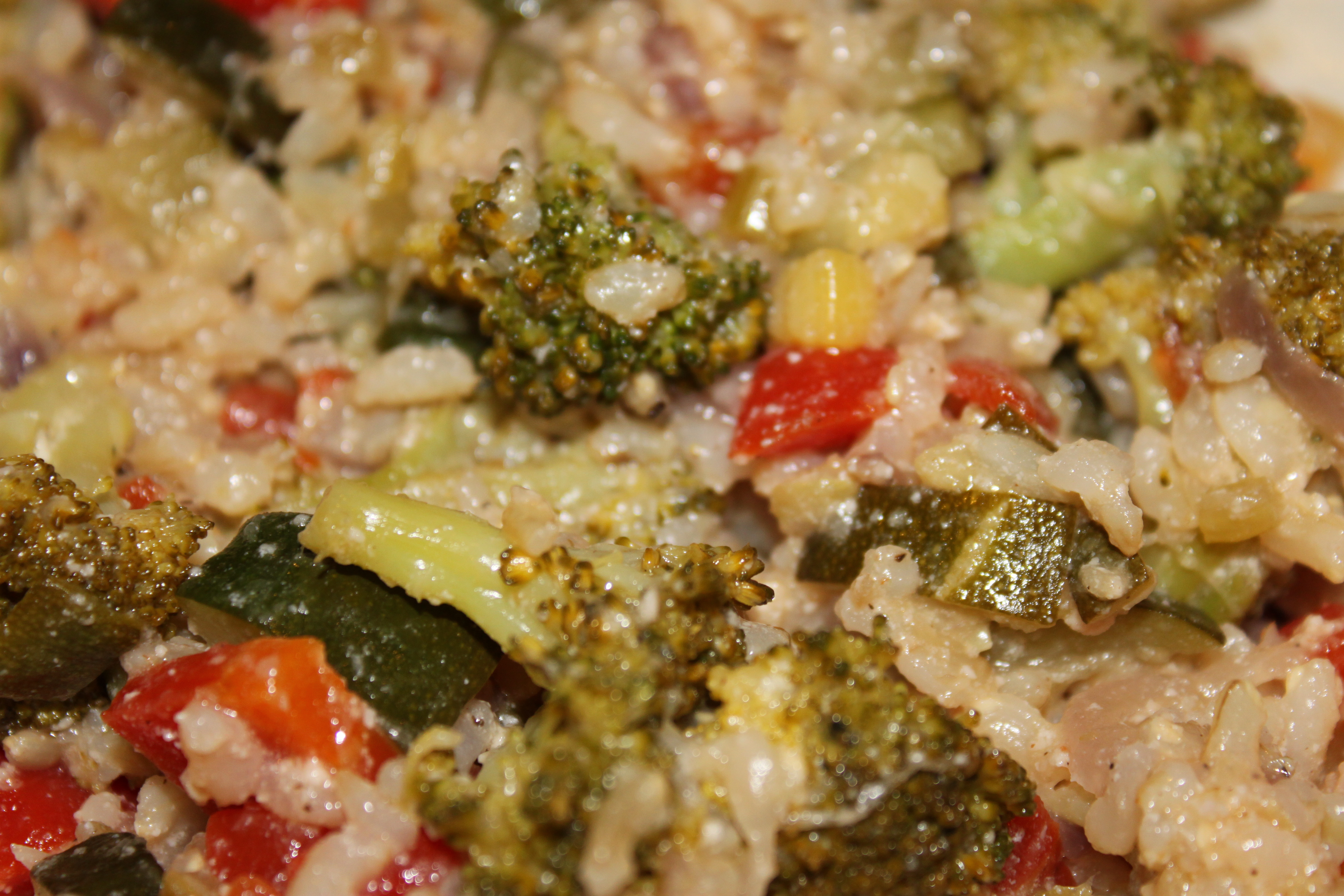 Once the veggies had softened a bit, I added in broccoli florets, chopped zucchini and then mixed in the brown rice (1/2 cup dry) that had been cooking in the background. I seasoned the mixture with white pepper, black pepper, salt and a pinch of dry mustard, and then added about 1/2 a cup of yogurt into the mix and allowed it to all cook together. The yogurt gave the dish a very creamy texture, reminiscent of a risotto.Β  I usually have yogurt with granola and fruit for breakfast in the summer, but with the winter months coming ahead, I think I’m going to start experimenting with yogurt in warm and savory dishes.