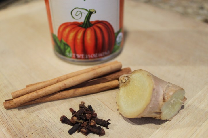I added enough water to cover the ingredients in the pot and set it to simmer on medium heat. Once the mixture had started bubbling, I added 2 tbsp of organic canned pumpkin and allowed it to continue to simmer. Once the mixture had reduced, I added a few drops of vanilla and a very small amount of agave nectar for taste. This made enough syrup for two generous lattes.