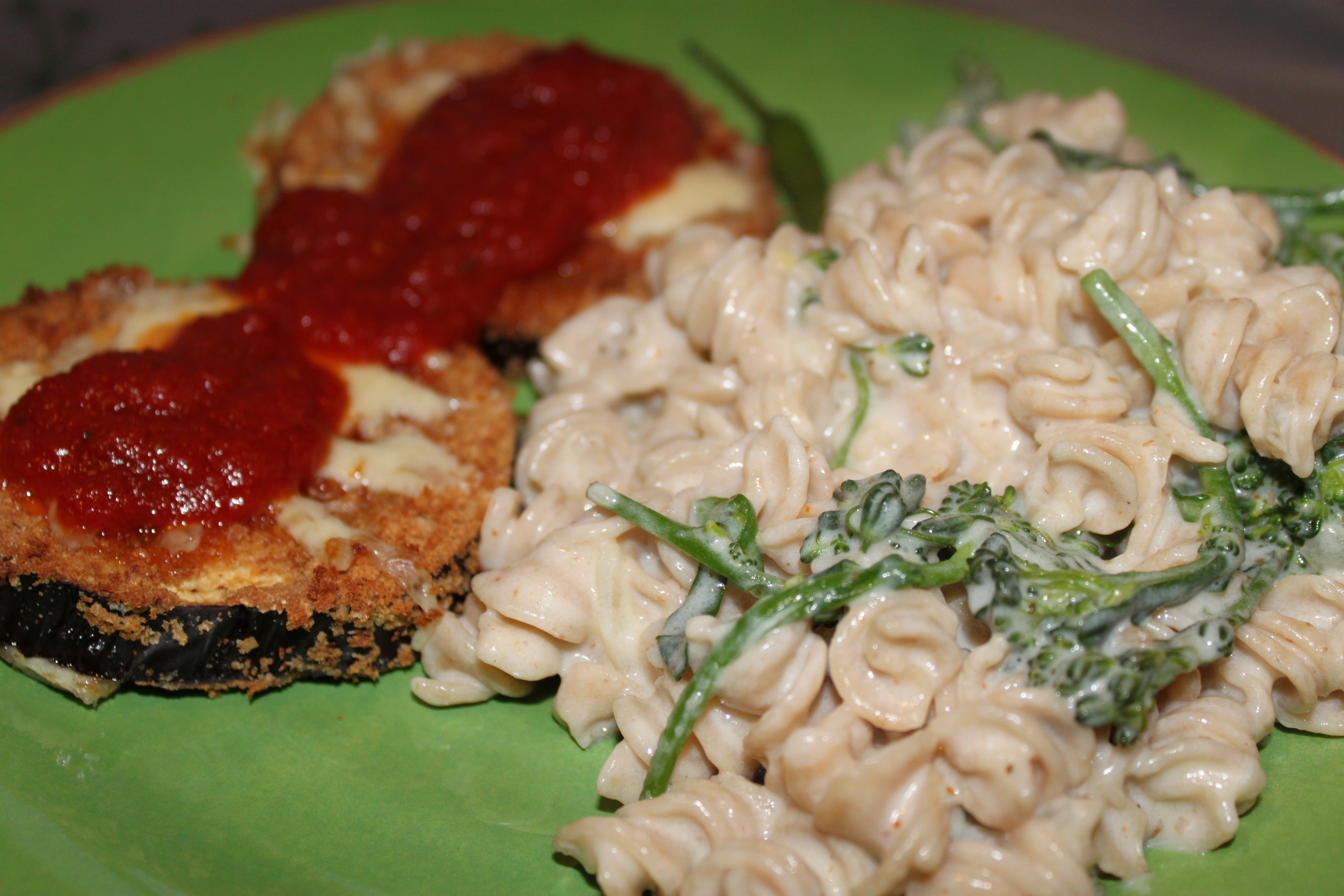 I’ve been meaning to try out Chez Bettay’s Vegan Crispy Baked Eggplant for a while now and finally ended up making a variation on Eggplant Parmesan using her recipe as a base.  Dinner wasn’t vegan tonight because I did use mozzarella cheese, but the eggplant came out so perfectly – very crispy and super light – not your typical Eggplant Parm recipe.  I’m looking forward to recreating this recipe when we have eggplants from our garden this summer.  I’m also really excited to have found a fantastic vegan option for breading other vegetables (did someone say zucchini sticks or jalapeño poppers?).