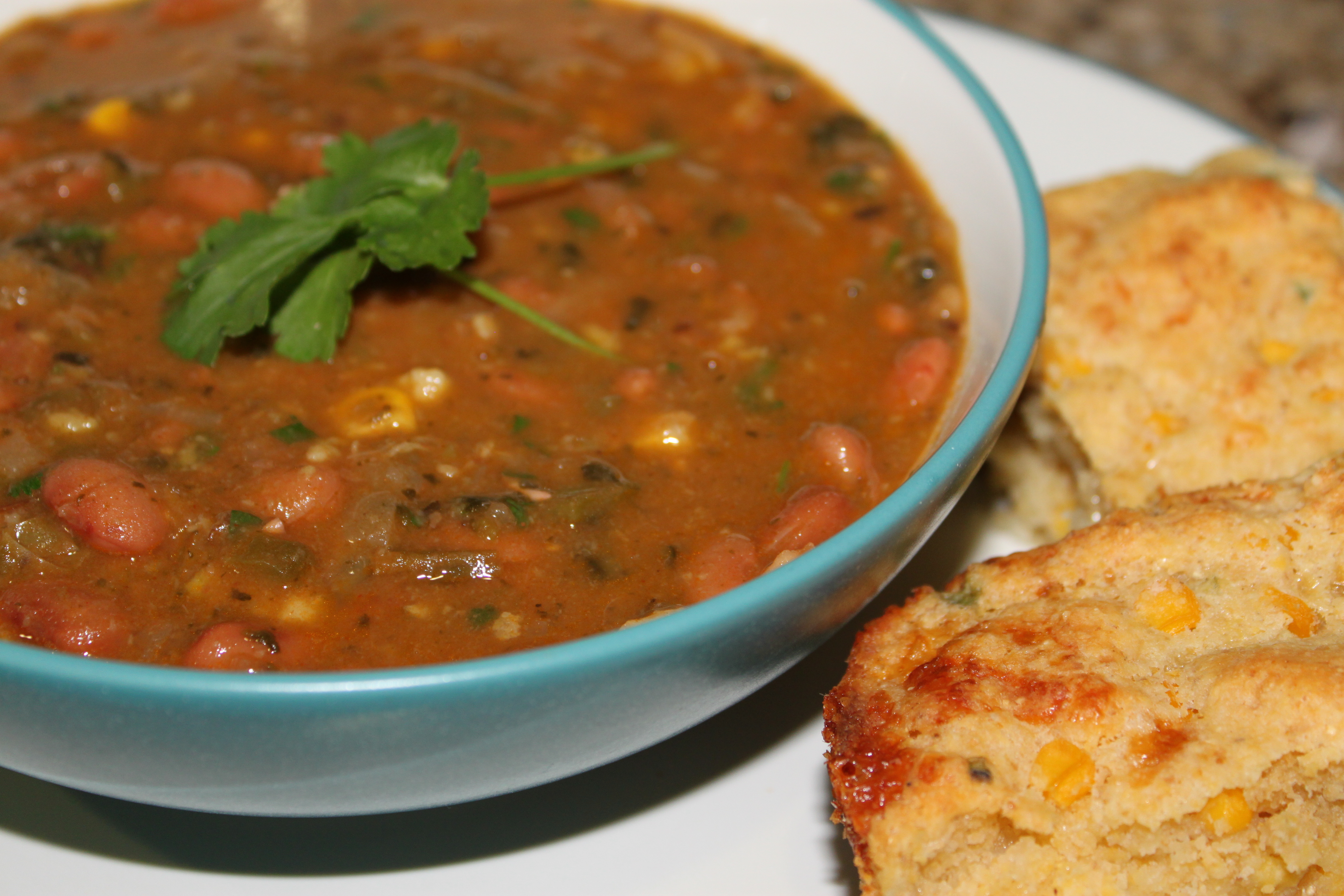 - 1/4 cup frozen or canned corn (or up to 1 cup – I had some leftover from making the cornbread and just wanted to use it up)