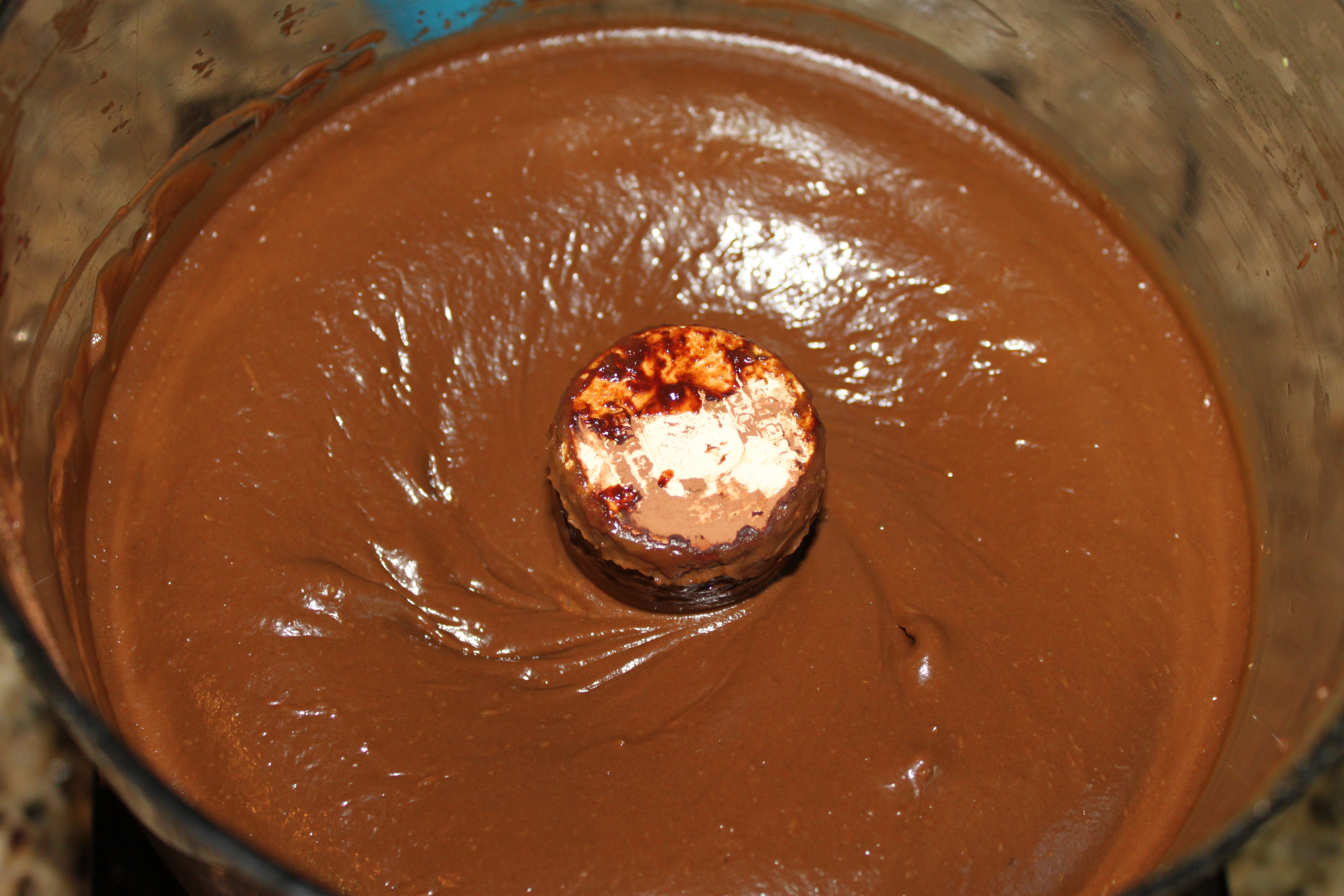 - Add the liquid mixture to the food processor – pulse a few times and add in the melted chocolate chips if using.