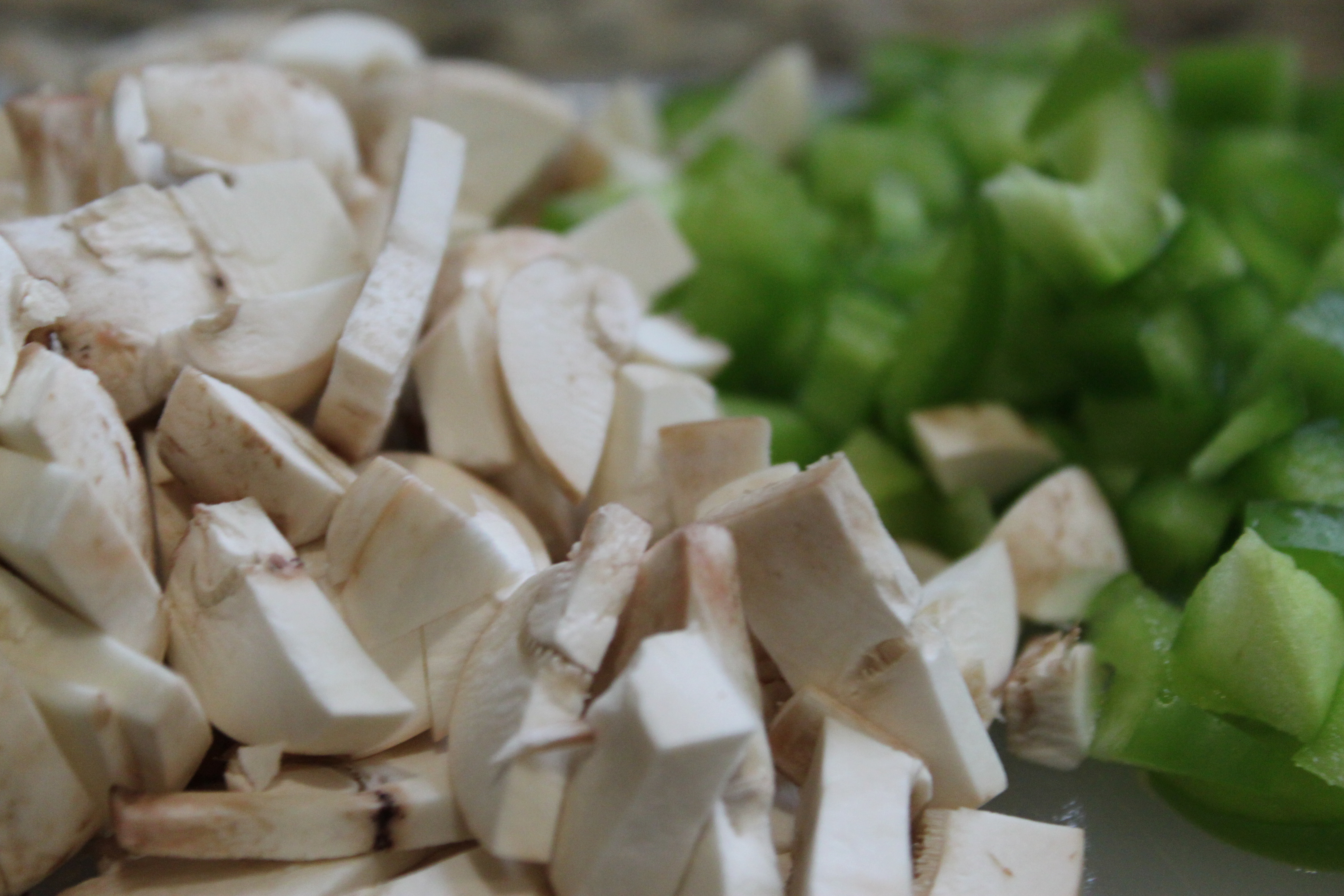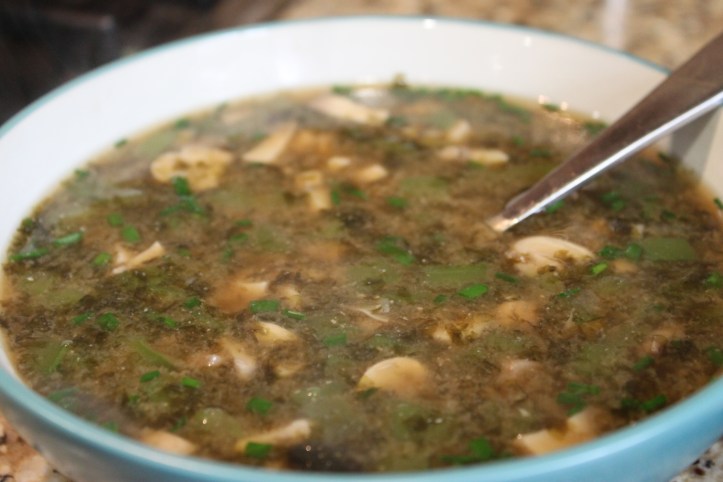 This morning’s soup had mushrooms, green pepper, chives and nori (I didn’t have any wakame in the house, so I just cup up pieces of nori). It took under 10 minutes to make (and if I had prepped my veggies the evening before, it would have been even faster).