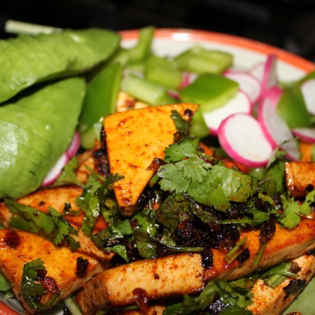Filling my CSA void with a blog post – Chili tofu on a bed of arugula